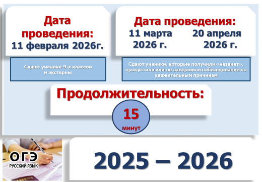Итоговое собеседование по русскому языку в 2025-2026 учебном году планируется проводить в соответствии с Порядком проведения государственной итоговой аттестации по образовательным программам основного общего образования (далее – ГИА), утвержденным приказом Министерства просвещения Российской Федерации и Федеральной службы по надзору в сфере образования и науки от 4 апреля 2023 г. № 232/551: